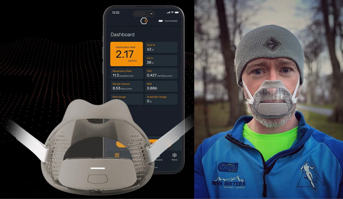 The Calibre device is a personal wearable that continuously measures expired 02 and C02.