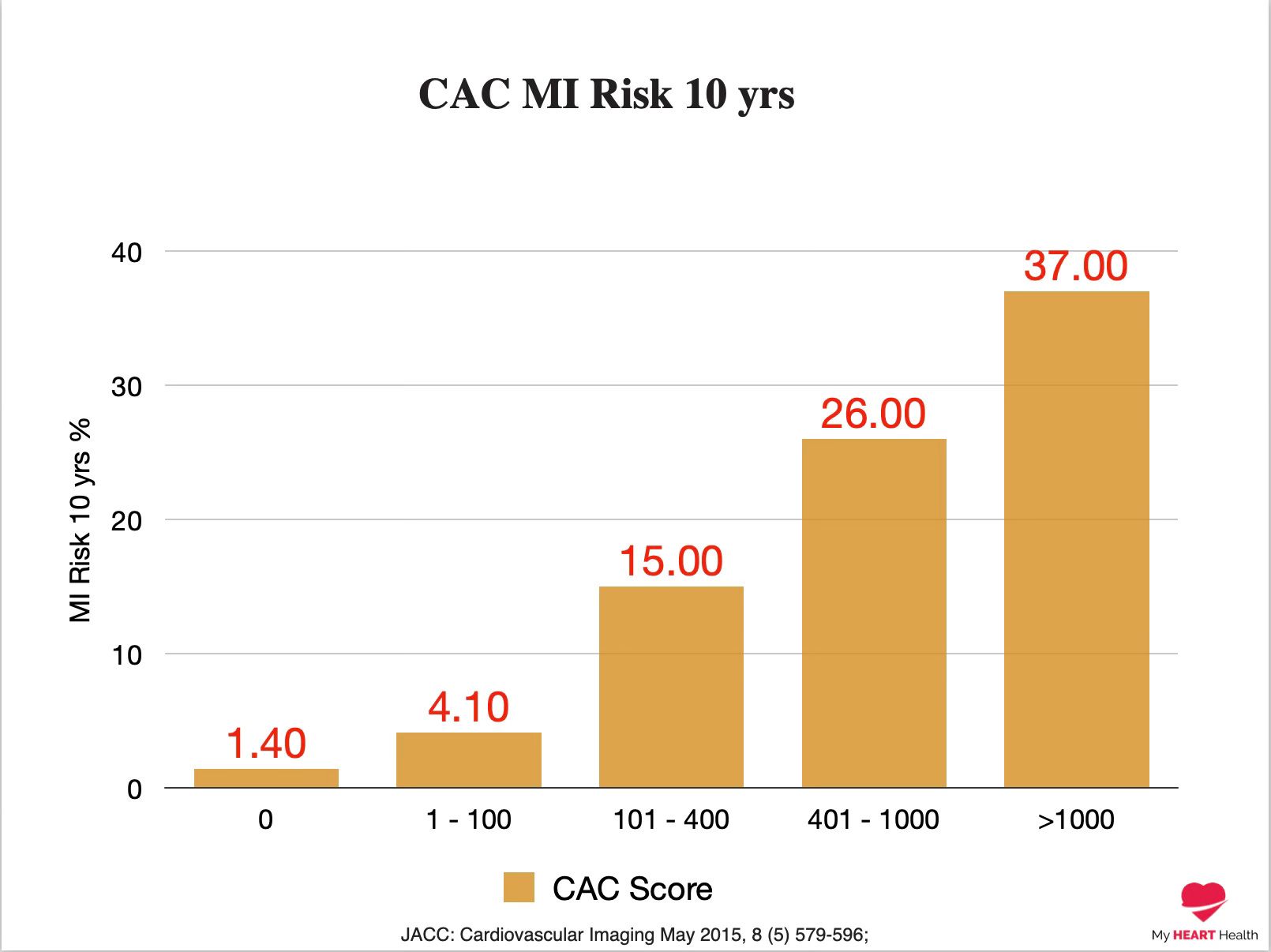 With a CAC score of 0, there is no advanced calcified plaque, and the risk of having a heart attack over the next ten years is in the range of 2%.